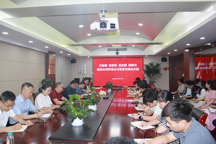 7月21日,根據(jù)公司黨支部主題教育工作計劃安排,黨支部書記顏紅勤同志以“學(xué)思想強黨性 重實踐 建新功 推動水利咨詢公司更高發(fā)展走在前”為題,講授主題教育專題黨課。本次授課共設(shè)5個會場,公司全體在職員工參會。