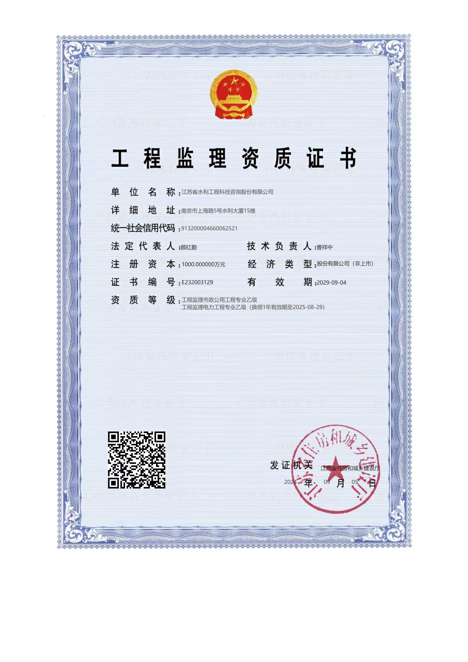 工程監(jiān)理資質(zhì)證書