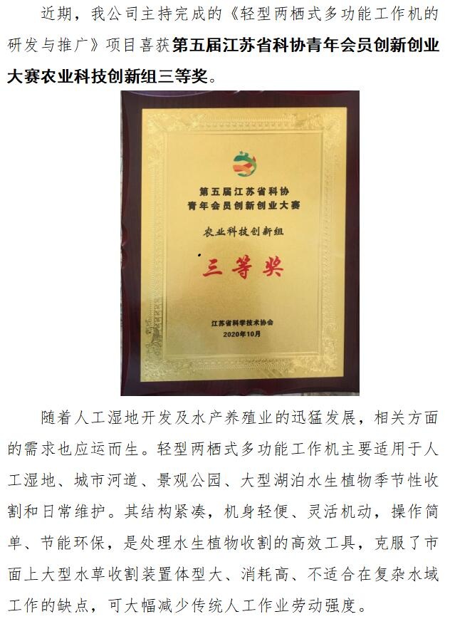 公司喜獲第五屆江蘇省科協(xié)青年會(huì)員創(chuàng)新創(chuàng)業(yè)大賽農(nóng)業(yè)科技創(chuàng)新組三等獎(jiǎng)作者:admin 來(lái)源: 日期:2020-11-3 15:06:20 人氣: 本文網(wǎng)址: |