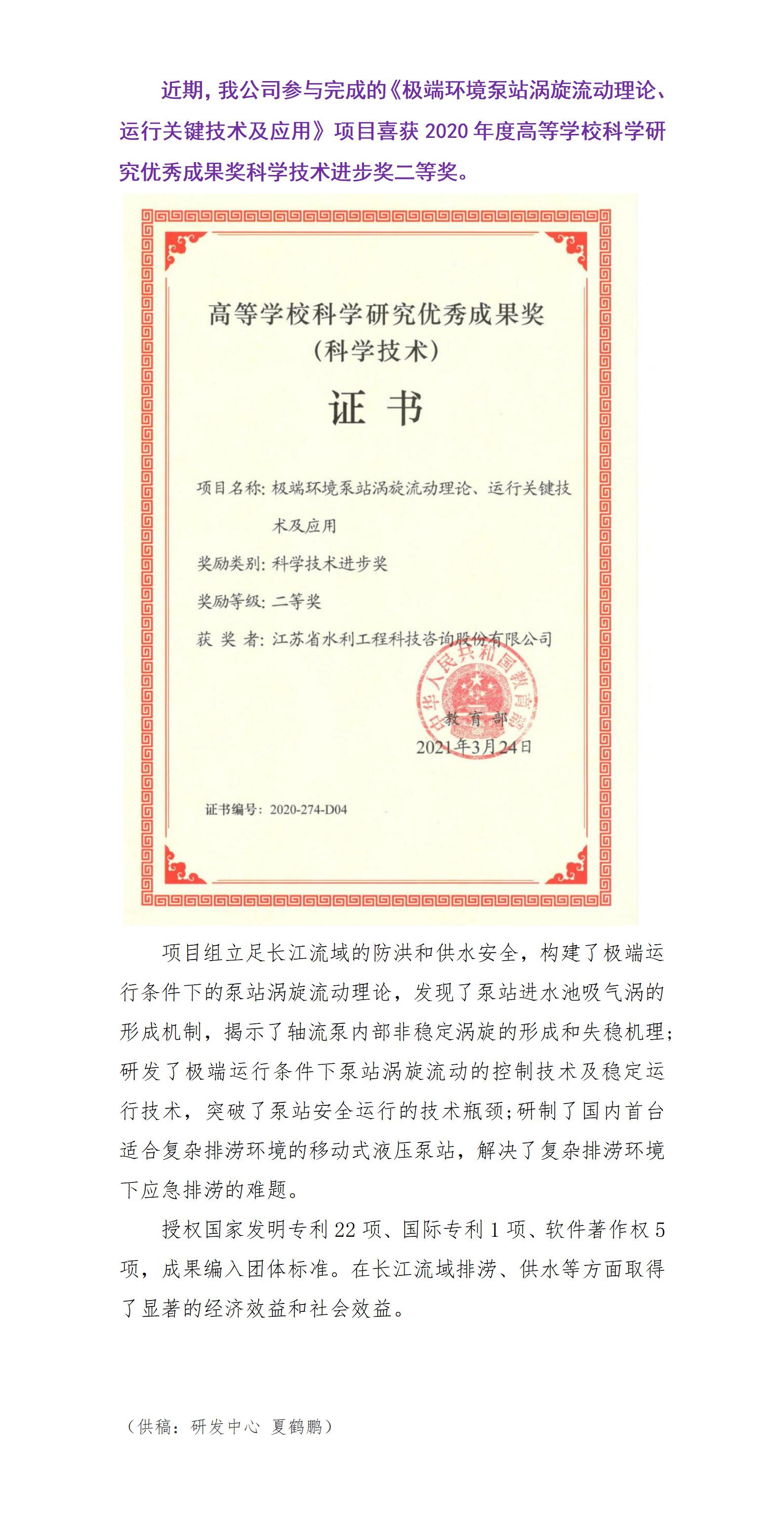 | 公司喜獲2020年度高等學(xué)校科學(xué)研究優(yōu)秀成果獎科學(xué)技術(shù)進(jìn)步獎二等獎作者:admin 來源: 日期:2021-5-6 10:28:56 人氣: