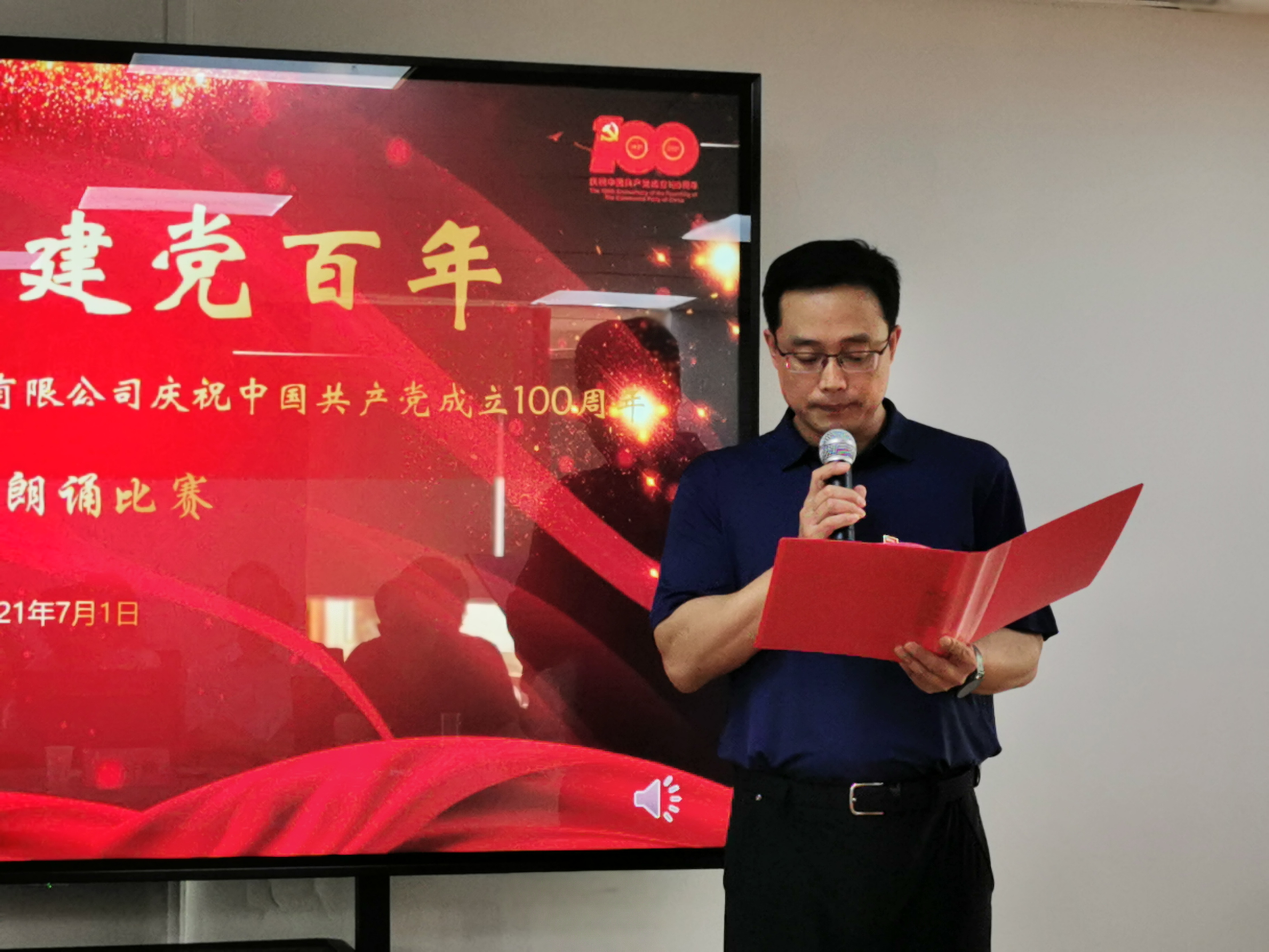 下午,公司舉行了“禮贊建黨百年”詩歌朗誦比賽。 顏紅勤董事長在致辭中對全體黨員提出三點要求:一要不斷加強黨的自身建設;二要不斷提高應對風險挑戰(zhàn)的能力水平;三要以主人翁的姿態(tài)致力于公司的發(fā)展。 賽場上,選手們感情真摯,聲情并茂,字字鏗鏘有力,句句激情昂揚,演繹了對中國共產黨的熱愛,歌頌了祖國和黨的偉大。最后,比賽在“沒有共產黨就沒有新中國”的振奮人心的合唱聲中落下帷幕。
