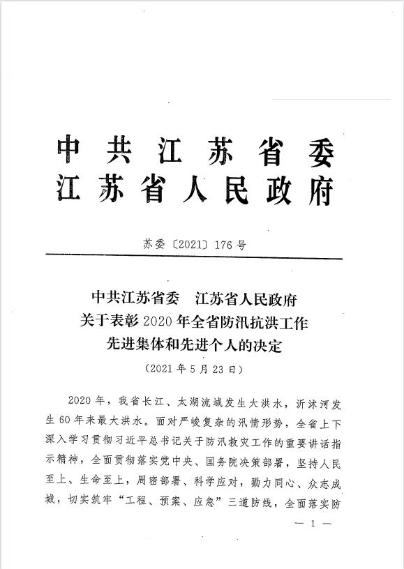 | 公司喜獲“2020年全省防汛抗洪工作先進集體”榮譽稱號作者:admin 來源: 日期:2021-7-19 10:30:11 人氣: