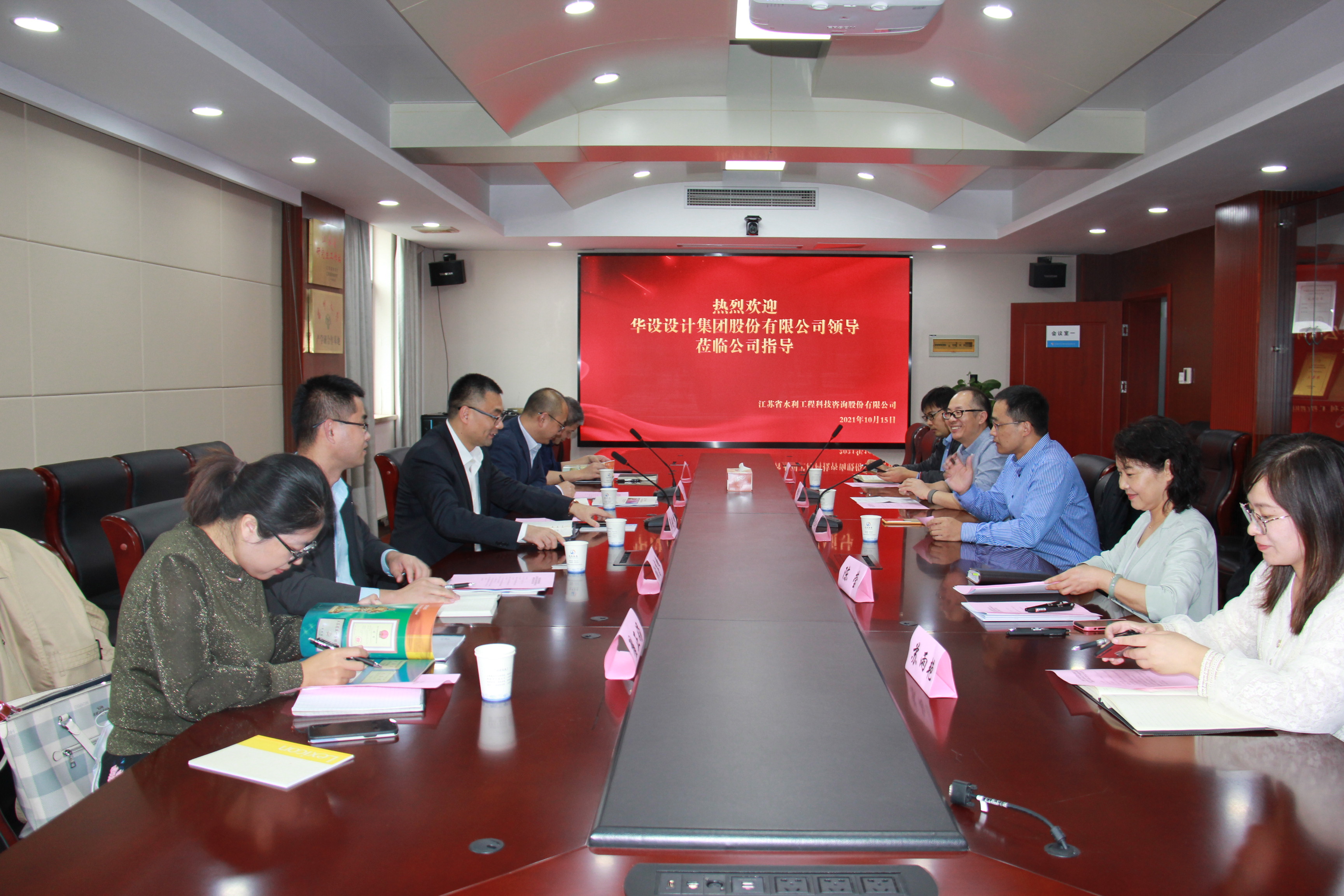 2021年10月15日下午13點(diǎn)30分,我公司與華設(shè)設(shè)計集團(tuán)戰(zhàn)略合作簽約儀式在5樓會議室順利舉行。公司董事長顏紅勤和華設(shè)設(shè)計集團(tuán)副總裁翟劍峰分別代表雙方在戰(zhàn)略合作協(xié)議上簽字。華設(shè)設(shè)計集團(tuán)水運(yùn)水利設(shè)計研究院王偉、張高峰、水利規(guī)劃所齊魯尚、翟正娟,我公司副總經(jīng)理翟高勇、綜合部陳瑩、規(guī)劃部甄峰、發(fā)展經(jīng)營部蘇雨艷等相關(guān)人員見證了簽約儀式。