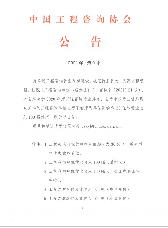 | 喜報:公司榮獲全國工程咨詢單位營業(yè)收入100強(qiáng)稱號作者:admin 來源: 日期:2021-10-27 16:39:24 人氣: