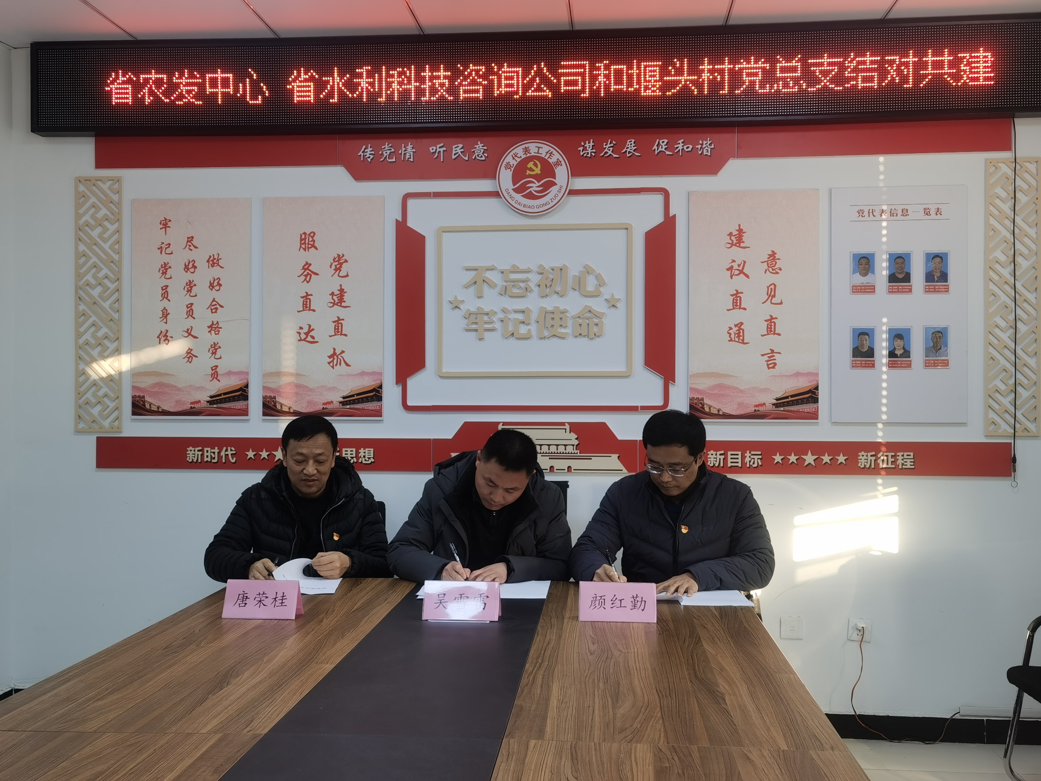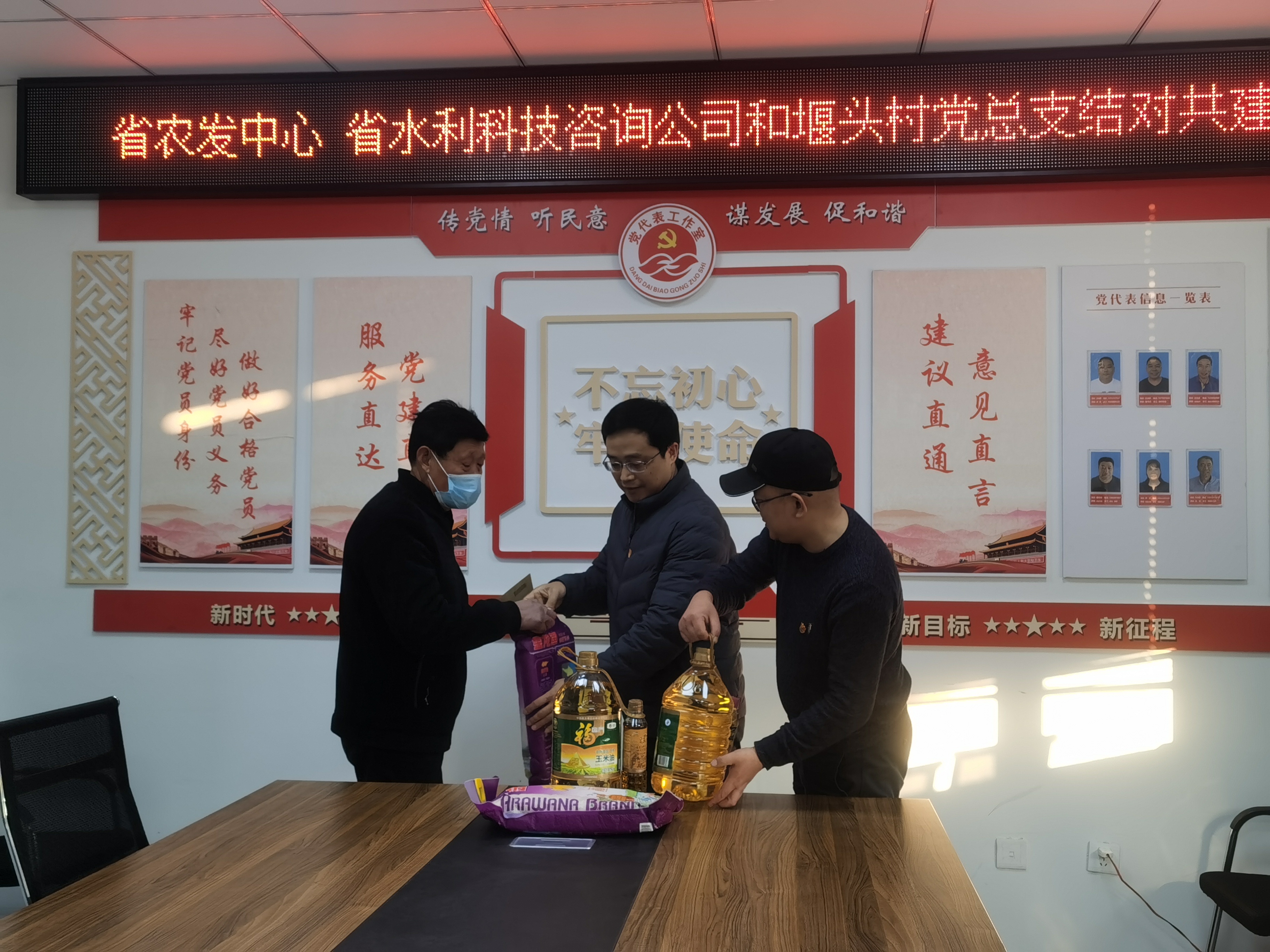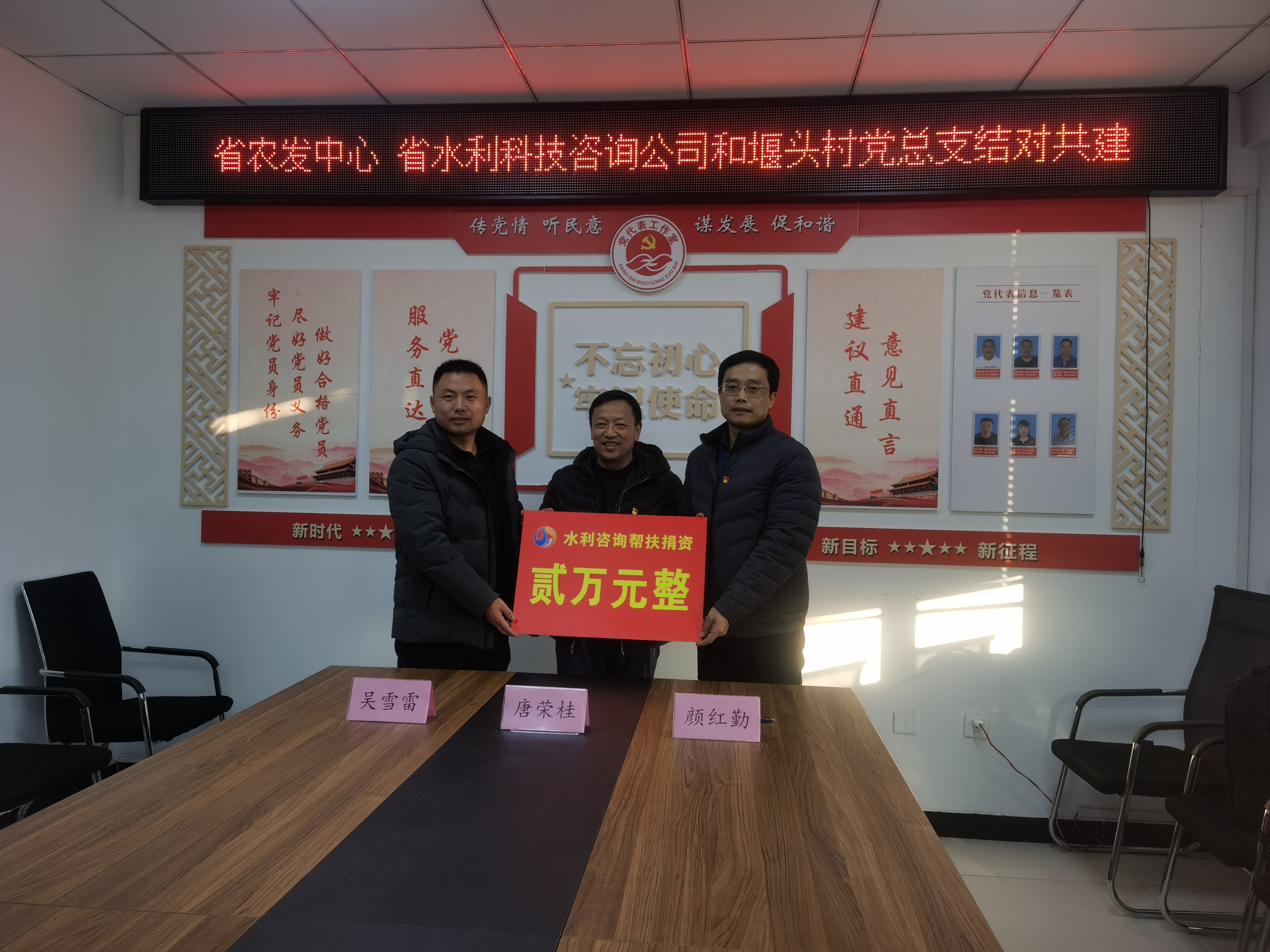 1月13日,公司黨支部書記、董事長(zhǎng)兼總經(jīng)理顏紅勤與省農(nóng)村水利科技發(fā)展中心黨支部書記、主任唐榮桂共同帶領(lǐng)相關(guān)工作人員,前往新沂市草橋鎮(zhèn)堰頭村開展結(jié)對(duì)共建活動(dòng)。 本次活動(dòng)以加強(qiáng)支部共學(xué)共進(jìn)為主題,共建三方分別介紹了支部情況,并就黨建與業(yè)務(wù)開展情況及下階段工作安排進(jìn)行了交流座談,提出了共建目標(biāo)與具體方案。 顏紅勤在座談會(huì)上表示,共建是各方相互學(xué)習(xí)的重要途徑,我們將全力支持此項(xiàng)活動(dòng),以黨建促聯(lián)建,以聯(lián)建促發(fā)展。我們將充分發(fā)揮水利咨詢單位的資源優(yōu)勢(shì),配合堰頭村在完善村莊規(guī)劃布局、環(huán)境綜合整治布點(diǎn)等方面進(jìn)行綜合規(guī)劃,用實(shí)際行動(dòng)為堰頭村建設(shè)作貢獻(xiàn)。