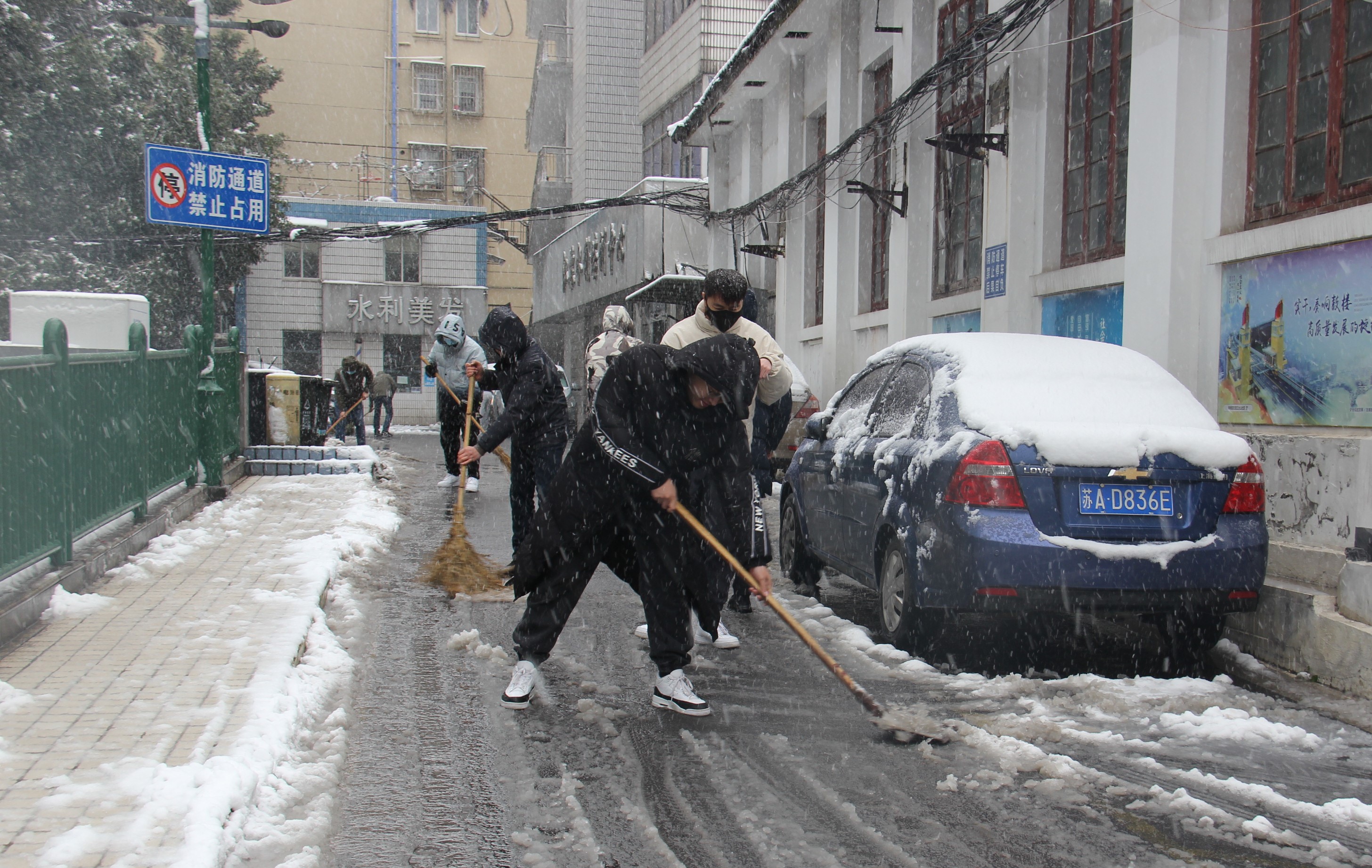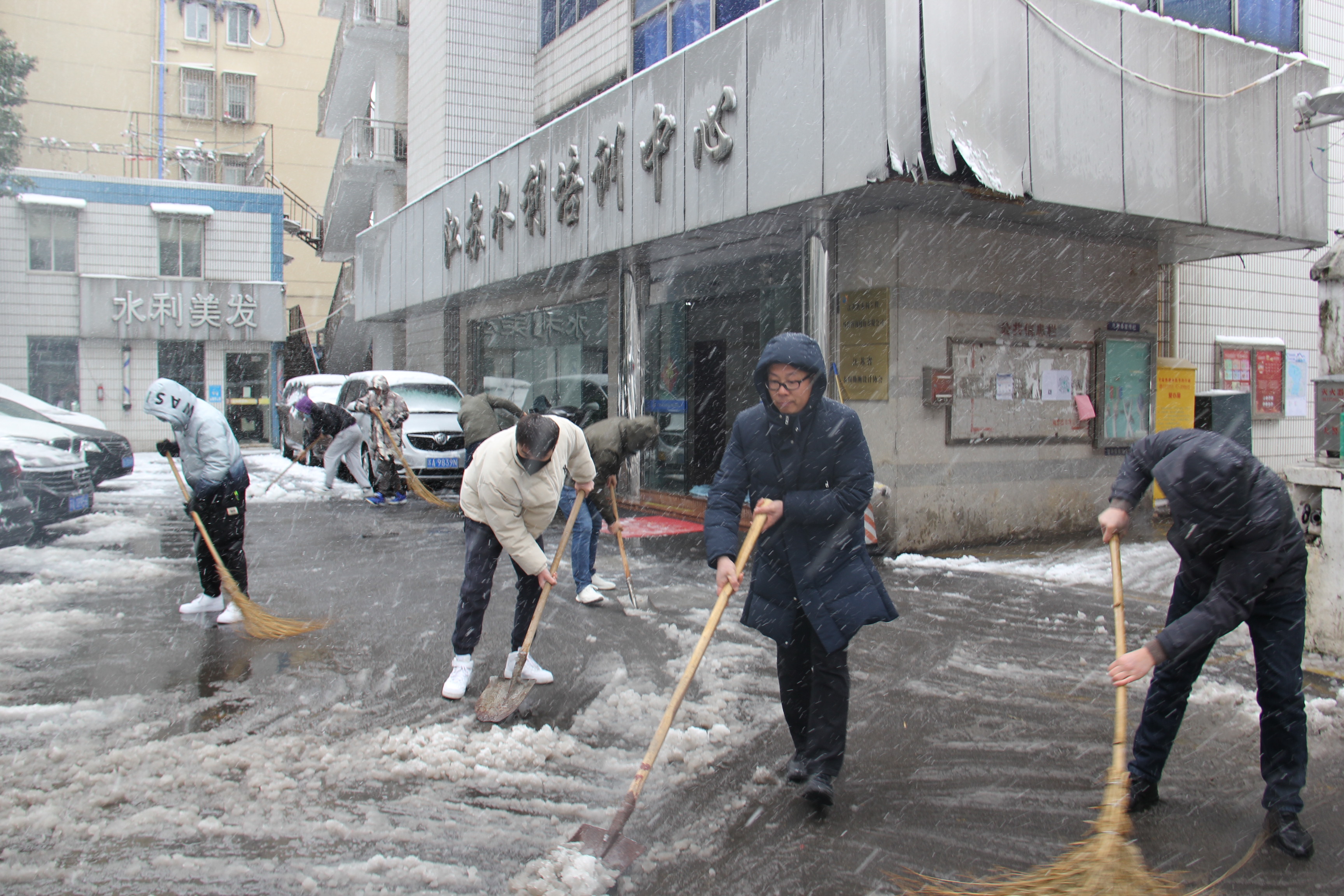 公司經(jīng)營(yíng)層發(fā)揮示范帶頭作用,職工們紛紛拿起鐵鍬、掃帚等工具,開(kāi)展鏟雪除冰行動(dòng),及時(shí)清掃門(mén)前、坡道、院內(nèi)積雪。志愿者們頂著凜冽的寒風(fēng),干勁十足,爭(zhēng)先恐后,大家你一锨,我一鏟,整個(gè)掃雪場(chǎng)面熱火朝天。伴隨著寒風(fēng)中上下飛舞的鐵鍬,方便居民出行的通道一一被打通。