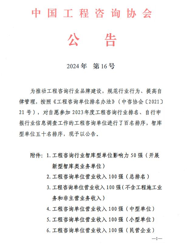 | 公司再次榮登全國(guó)工程咨詢單位營(yíng)業(yè)收入100強(qiáng)榜單作者:admin 來(lái)源: 日期:2024-11-12 15:02:42 人氣: