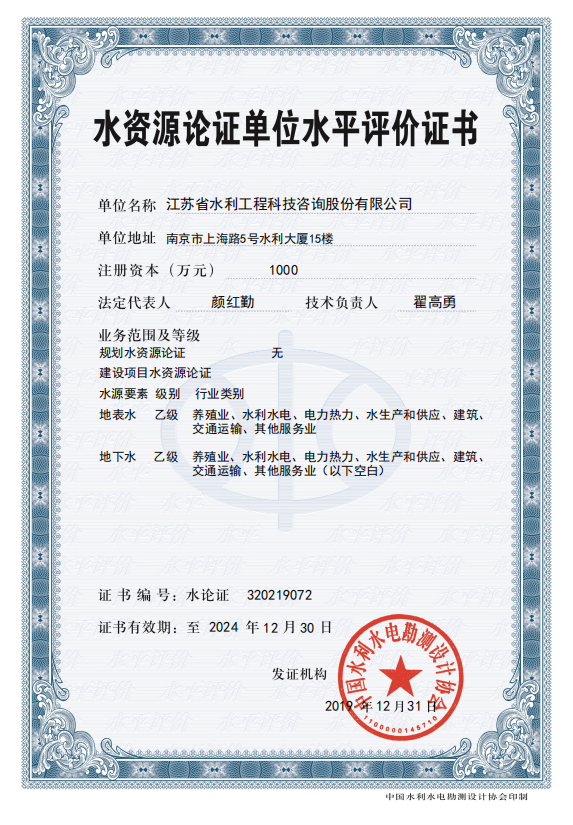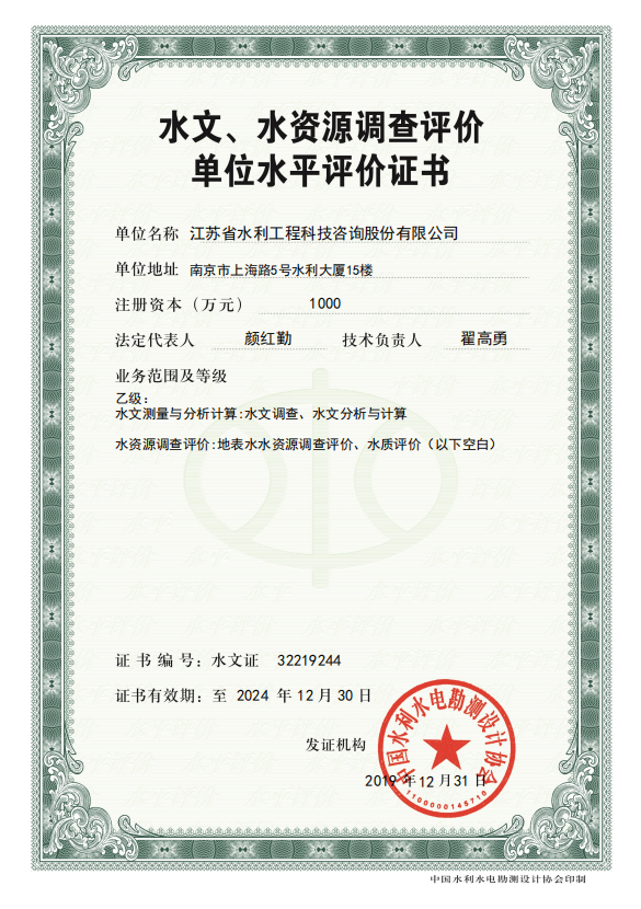 | 我公司取得水資源論證單位水平評價、水文水資源調(diào)查評價單位水平評價乙級證書作者:admin 來源: 日期:2020-3-11 14:16:38 人氣: